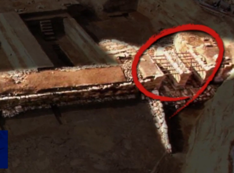 동대문 운동장 하부에 묻혀 있던 이간수문 아래쪽 색깔이 검은 부분은 발견당시 그대로 보존을 한 부분이다.